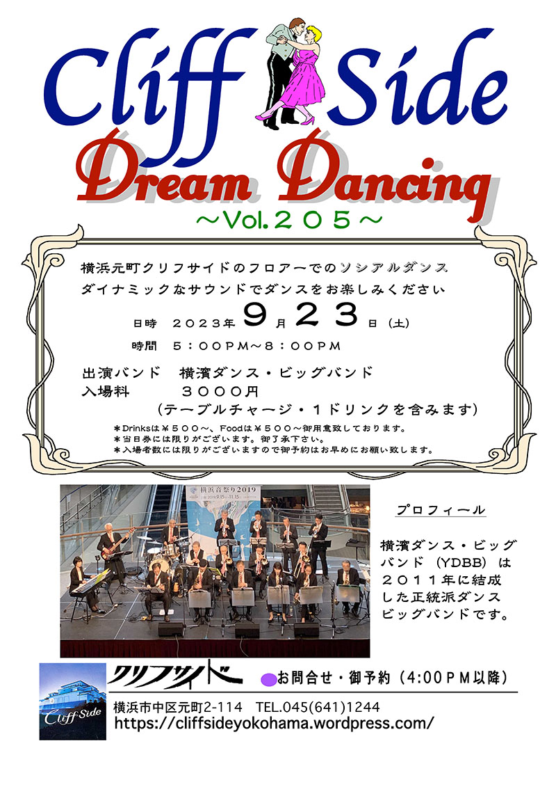 長らくご無沙汰していたクリフサイドのダンスパーティ演奏に9月から復帰することが決まりました。