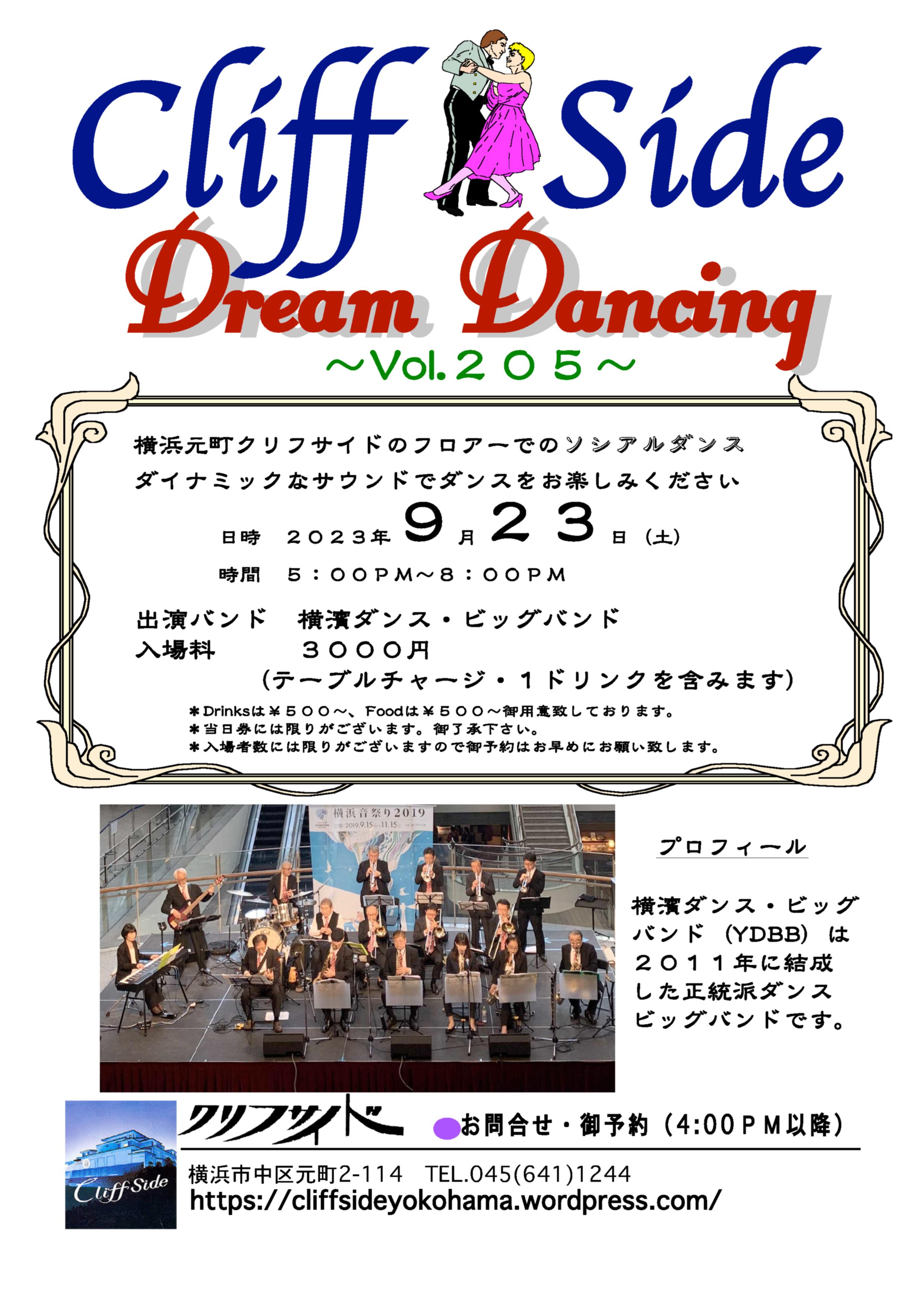 Cliff Side "DANCE NIGHT"に復帰します! 長らくご無沙汰していたクリフサイドのダンスパーティ演奏に9月から復帰することが決まりました。